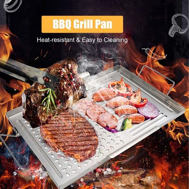 Decdeal – Sartén para barbacoa, verduras, bandeja para barbacoa de acero inoxidable, cuadrada Producto nuevo en su caja Hay 9 unidades disponibles