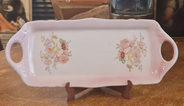 Buena bandeja de loza de Alcobaça Portugal, desconocemos el fabricante, esta en buen estado muy del estilo sandwichero de las bandejas inglesas del XIX