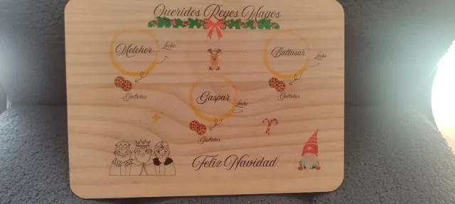 Detalles del productoBandeja de madera para dejar la comida y bebida a los Reyes Magos y su camello.
