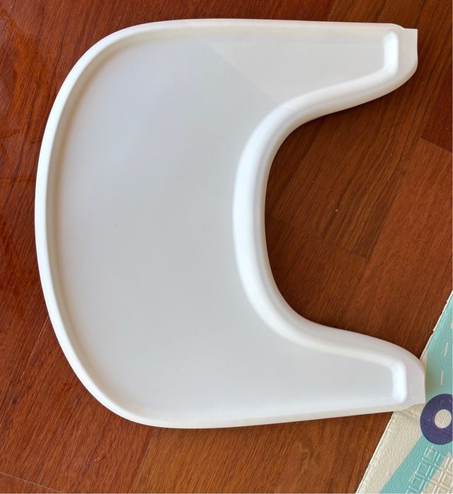 Bandeja blanca para trona Stokke. - Material plástico. - Diseño curvo.