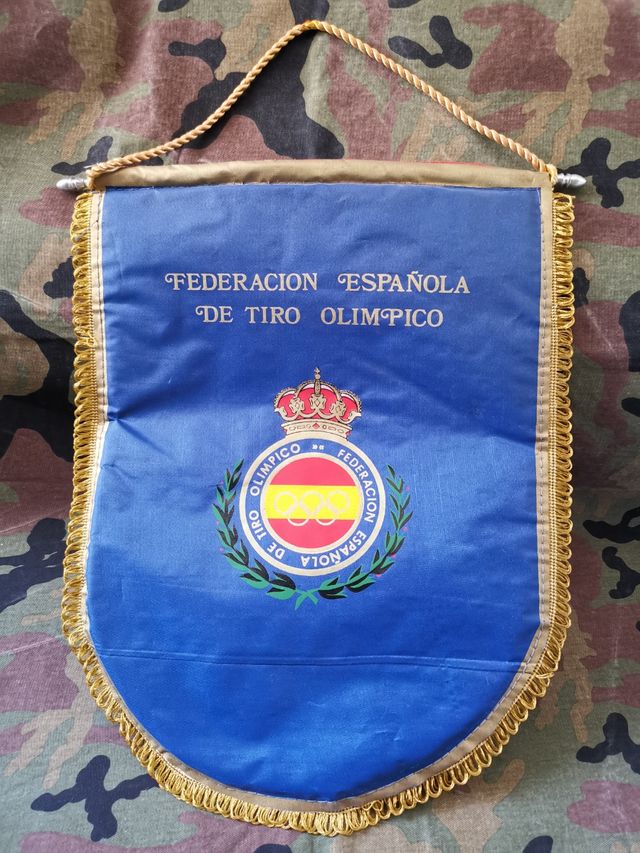 Detalles del productoHistórico banderín deportivo de la Federación Española de Tiro Olímpico, de la época franquista. Por ello lleva el escudo de la España preconstitucional en su reverso. Muy elegante en acabados. En buen estado de conservación, pese a tener medio siglo, salvo el águila del escudo que presenta zonas descoloridas. Medidas en últimas fotos.