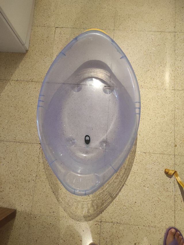 Detalles del productoBañera bebé, con tapón para el vaciado de agua. Tiene un desperfecto en un borde. Las medidas son las exteriores de borde a borde. La interiores son 66cmx47x20cm