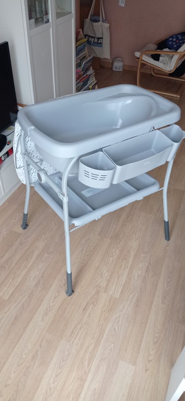 Bañera para bebé de la marca Chicco. El cambiador tiene una parte amarillenta, no es suciedad. Es deterioro del plástico. Está en muy buen estado. Se da con su caja