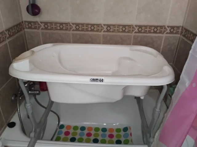 Bañera para bebé con soporte. - Base adaptable para colocar sobre bañera. - Diseño ergonómico para mayor comodidad. - Material de plástico resistente.