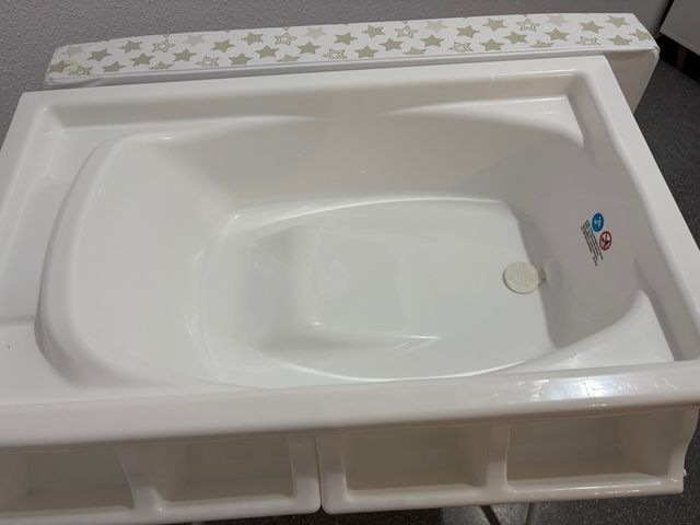 Bañera para bebé con un diseño moderno y práctico. - Color beige con estampado de estrellas. - Incluye cambiador.