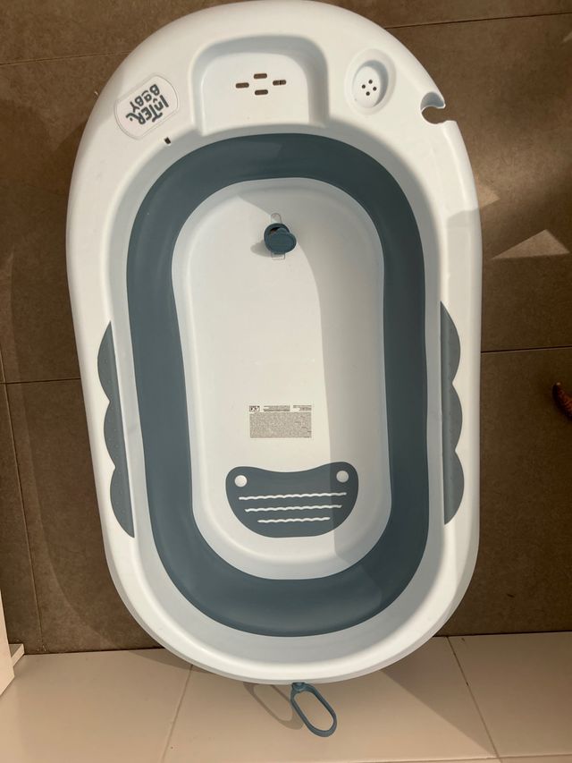 Bañera plegable para bebés, ideal para ahorrar espacio. - Diseño moderno en azul. - Incluye tapón para vaciado. - Asa para colgar.