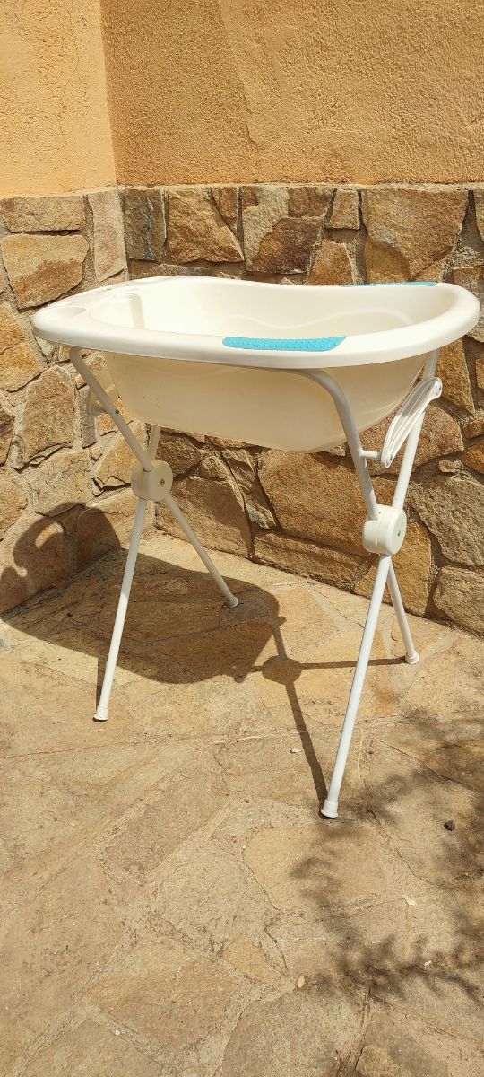 Detalles del productoBañera para bebé con estructura plegable, ideal para facilitar el baño de los más pequeños. Está en buen estado y lista para usar.
