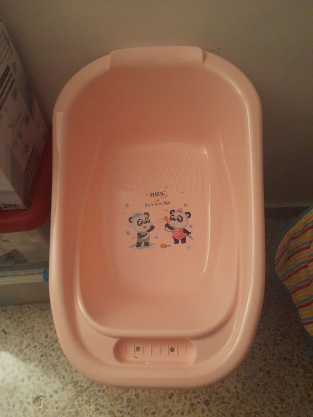 bañera rosa portátil adaptable a cualquier bañera del baño para bañar a tu bebé.