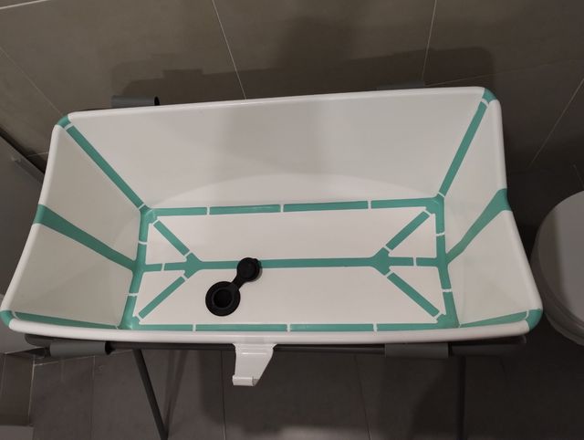 Detalles del productoBañera para bebé Stokke, plegable y en buenas condiciones. Es blanca con detalles en verde menta.