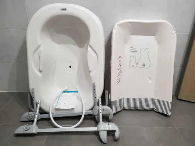 Detalles del productoPráctica bañera cambiador para bebés de la marca Brevi. Incluye soporte.