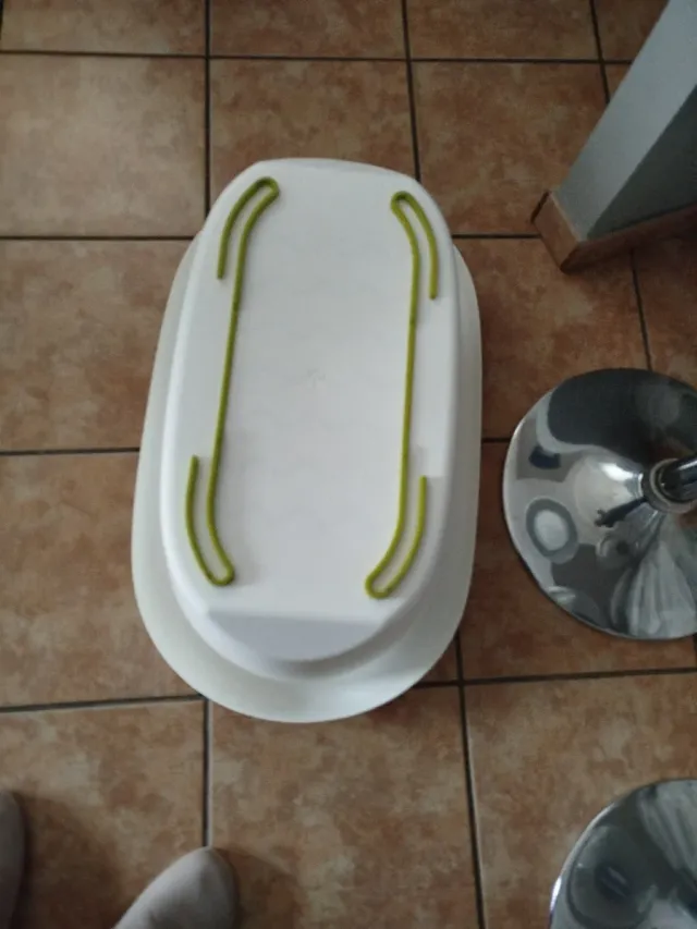 Bañera de bebé blanca con asas verdes