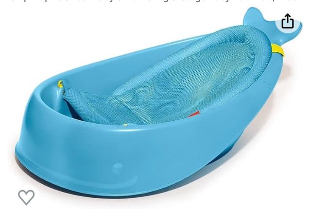 Con desagüe. Usada por dos bebes pero en segunda residencia asi que no tiene mucho uso. El tejido ha amarilleado un poco del uso. Se puede vender tambien la jarra de ballena a juego.