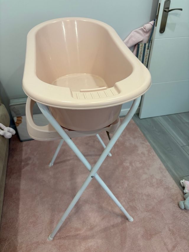 Bañera para bebé rosa con soporte
