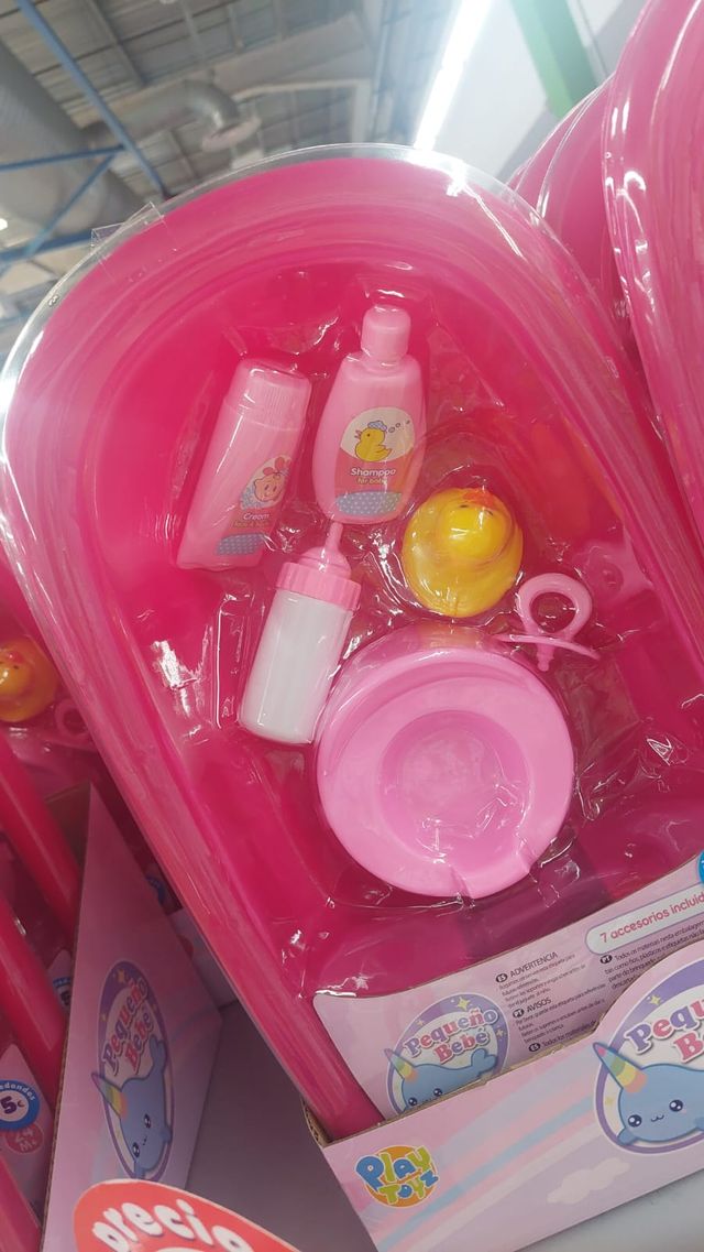 Detalles del productoBañera para Muñecas con Accesorios. Podrás darle un baño relajante a tu bebé en su bañerita y pasar horas de diversión aseguradas. Dispone de muchos accesorios donde podrás darle su bibi o su chupete. Ponlo hacer pipi en su pequeño wc y después báñalo en su bañerita con sus tarros para ello y un patito para que juegue mientras se da su baño. Edad recomendada a partir de los 24 meses.