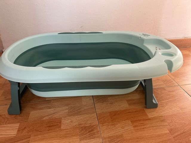 Detalles del productoBañera plegable para bebés, diseñada para facilitar el baño y el almacenamiento.