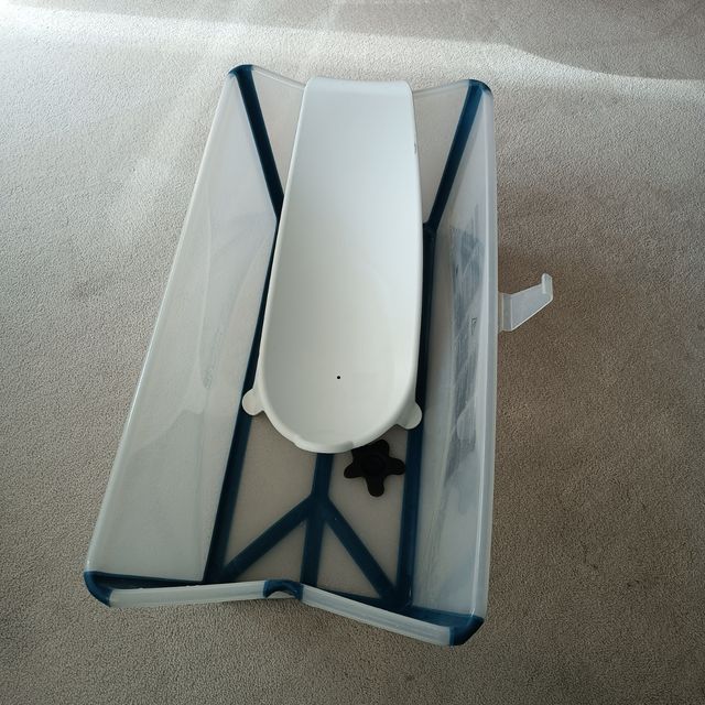 Bañera Stokke en buen estado, diseñada para la comodidad de los bebés. Regalo el adaptador. - Diseño ergonómico. - Materiales seguros y duraderos. - Fácil de limpiar.