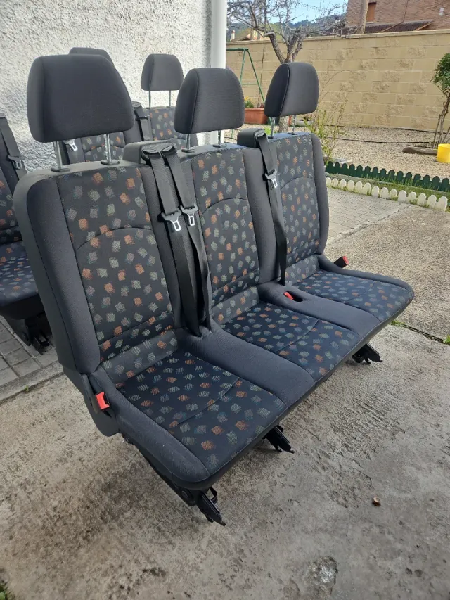 Detalles del productoBanqueta de tres asientos para Mercedes Vito W639. No se han usado porque son de una furgoneta camperirizada.Tapicería con diseño de rombos en tonos grises, azules y naranjas.