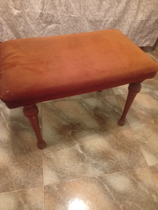 Banqueta antigua de madera y terciopelo