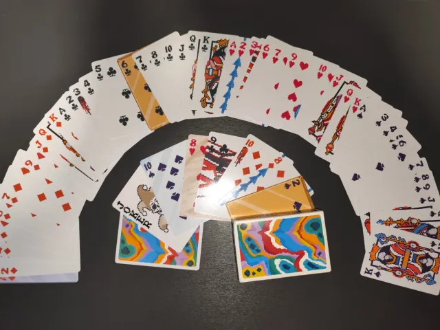 Detalles del productoBaraja de cartas inspirada en el juego Balatro. Incluye un mazo completo con diseños únicos.