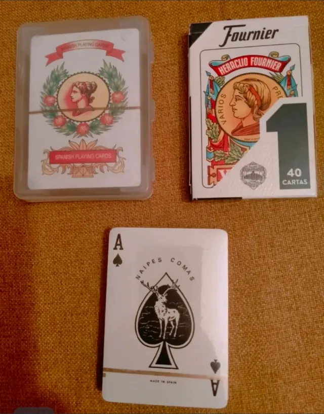 2 barajas de cartas españolas y otra baraja de poker marca comas - Están en su funda o caja original.