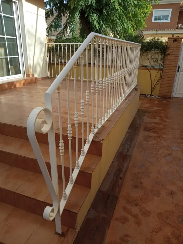 Barandilla de forja con un diseño clásico y elegante, ideal para escaleras o balcones. - Fabricada en forja. - Color blanco. - Diseño con balaustres decorativos.