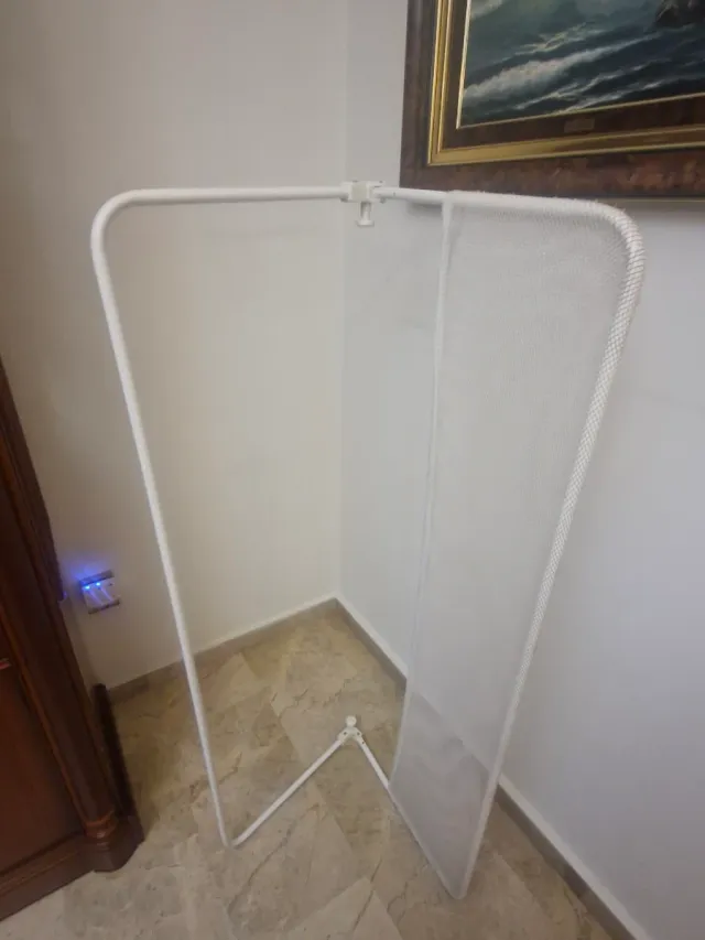 Barandilla de seguridad para proteger a los más pequeños. - Estructura metálica blanca. - Diseño de malla. - Plegable para fácil almacenamiento.