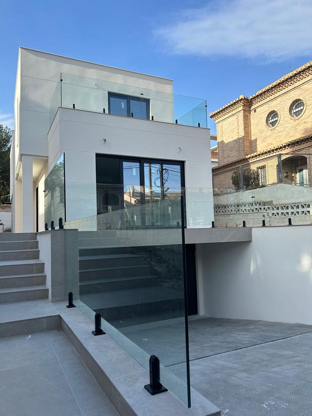 Barandilla a medida con vidrio laminar de seguridad con pinzas a suelo con diferentes acabados y colores. Medición y montaje incluido