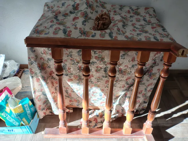Detalles del productoBarandilla de madera para escalera, compuesta por 5 tramos.