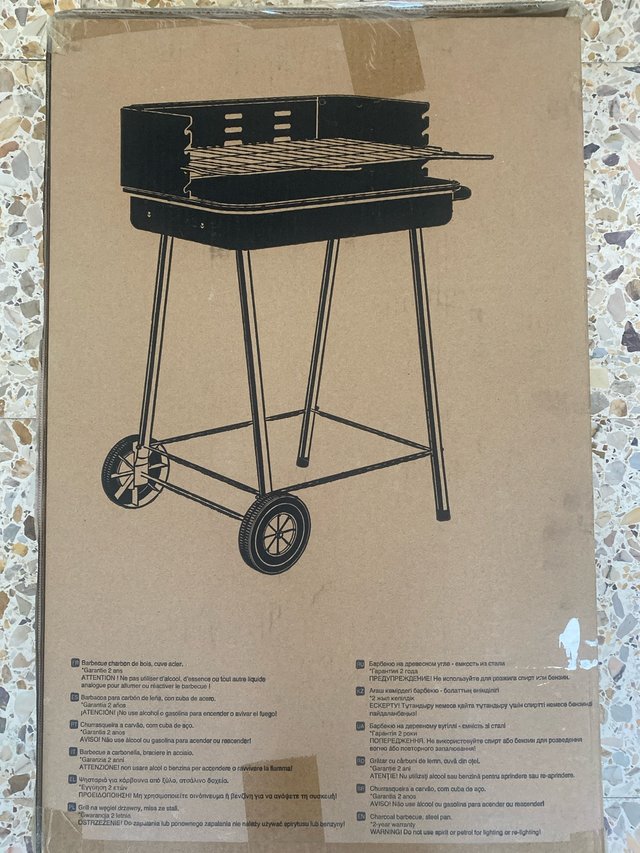 Barbacoa de carbón con cuba de acero y ruedas para facilitar su transporte. Ideal para disfrutar de tus comidas al aire libre.