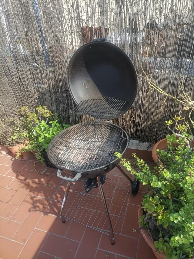 Barbacoa de carbón negra y plateada
