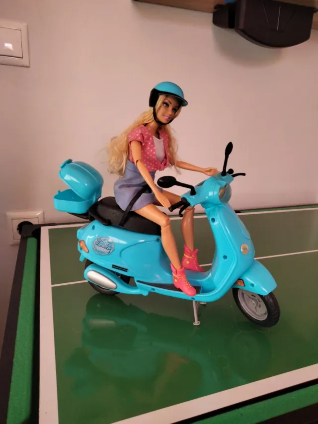 Barbie con moto azul y casco