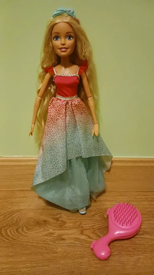 Muñeca Barbie Gran Princesa con un vestido de gala. - Vestido rosa y verde degradado con detalles. - Incluye un cepillo rosa. - Altura: 43cm NO HAGO ENVÍOS
