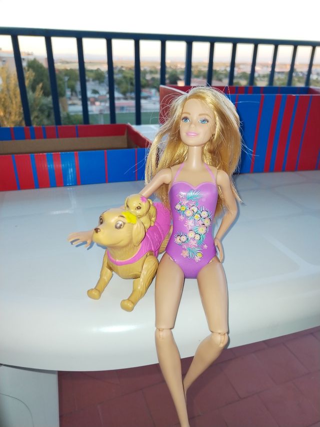 Detalles del productoMuñeca Barbie con un bonito bañador de flores.