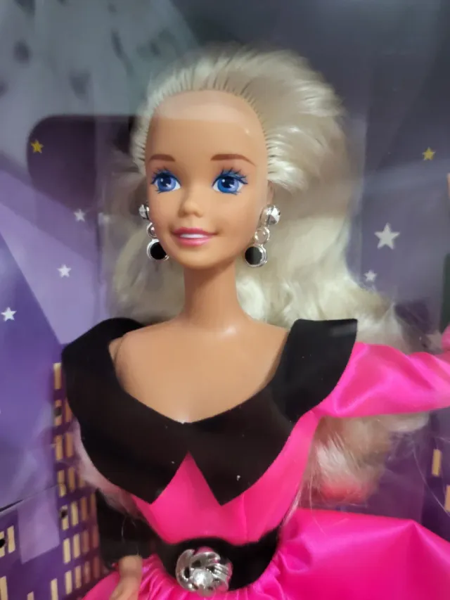Muñeca Barbie Steppin Out. - Cabello rubio. - Vestido rosa y negro. - Pendientes plateados.