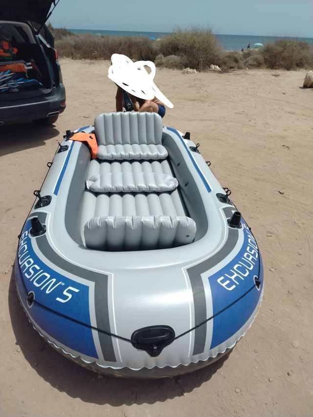 Detalles del productoSe vende barca hinchable Excursión 5,con motor eléctrico de 1cv,batería,soporte de motor,2 remos,2 bombas hinchado( manual y coche)ancla de 10kg y 10 metros de cuerdas más mosquetón.