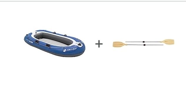 Barca hinchable Capacidad de hasta 3 personas adultas. Tamaño de 298 x 135 cm Carga máxima 310 kilos Posibilidad de añadir motor hasta 3 CV , 4 remos incluidos