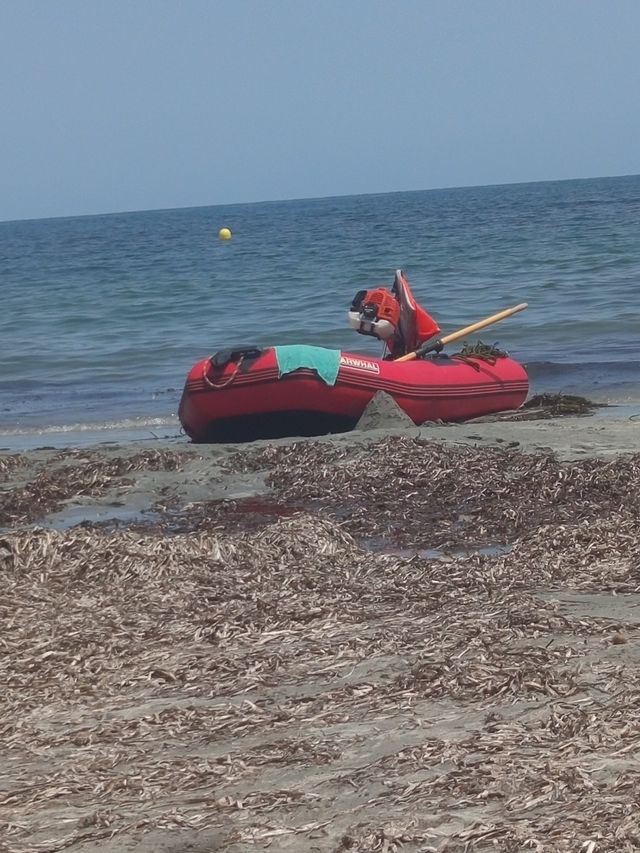 Detalles del productoBarca neumática roja nerwall en buen estado. Ideal para actividades acuáticas.