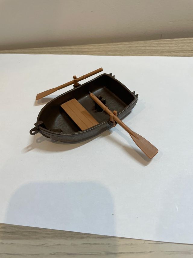 Barca de Playmobil en color marrón oscuro, con dos remos marrones y un banco interior. - Barca de juguete. - Incluye dos remos. - Banco interior.