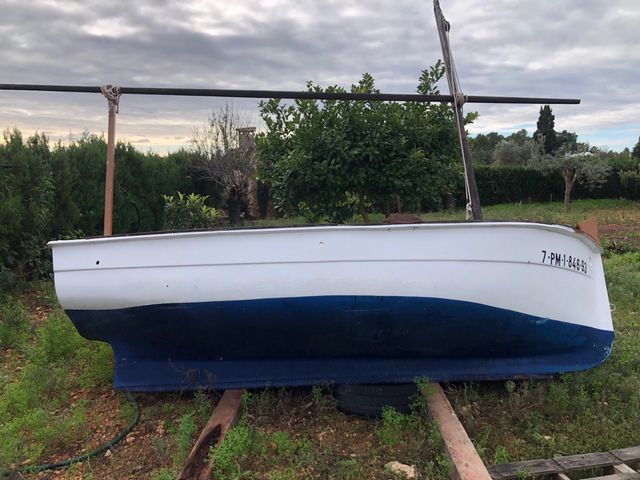 Detalles del productoBarca tipo bote o llaut recién pintada. Tiene algunas “heridas” en la fibra, pensamos que con pintarla con el antifouling sería suficiente. Pero no es así y le entra agua.