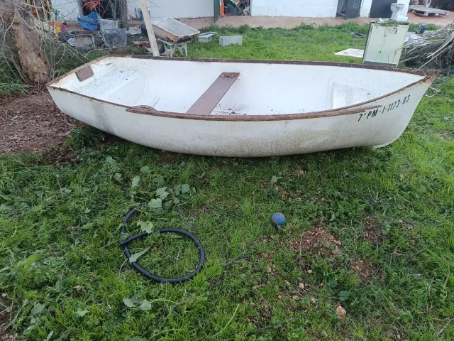 Detalles del productoBarco tipo bote de color blanco, ideal para paseos o pesca.