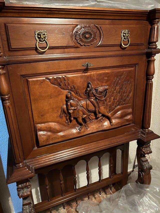Bargueño tallado con motivos del libro "El don Quijote". Creado en Asociación Artesanos de Jaén, de los años 80