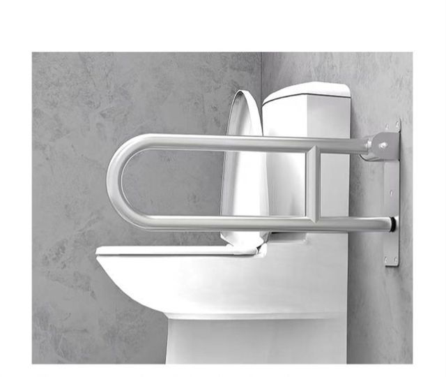 Barra abatible para inodoro, ideal para personas mayores o con movilidad reducida. Está en buen estado.