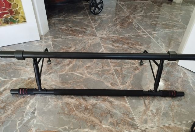 Calistenia para apoyar en parte superior de una puerta , aguanta muchísimo peso y es muy rígida , cuando se engancha no se cae. Es plegable y fácil de guardar . lo compré en la época de la pandemia por 69 € y ya no lo uso.