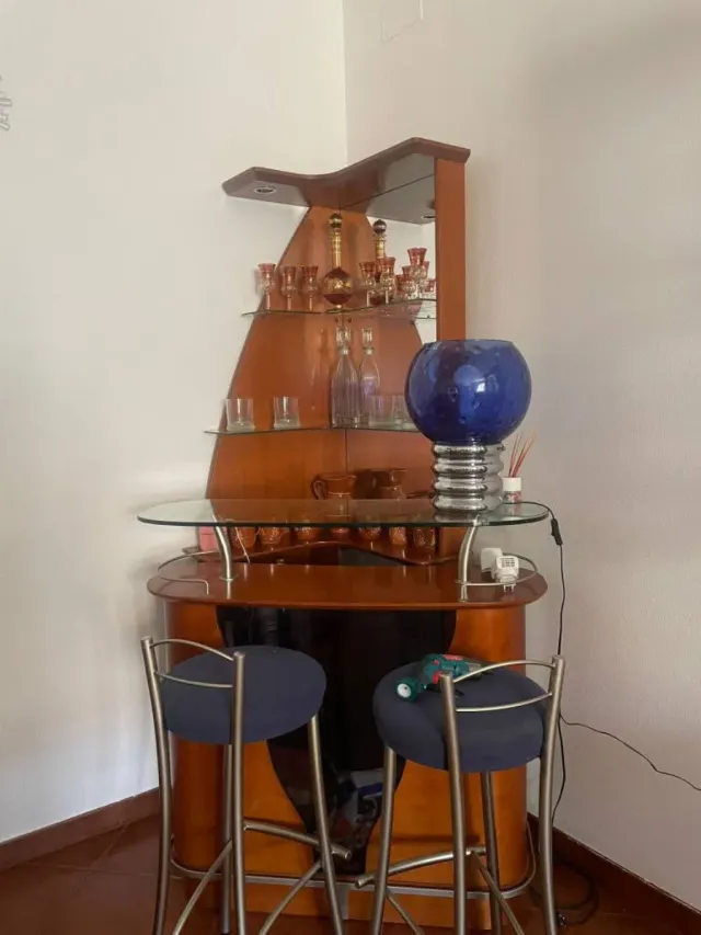 Detalles del productoConjunto de barra de bar con dos taburetes, ideal para tu salón o comedor.