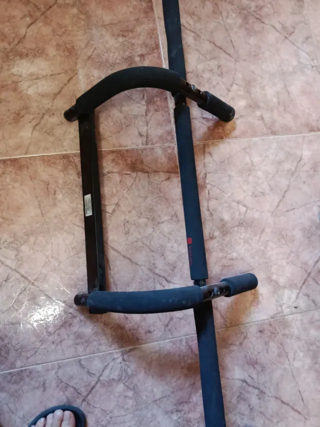 Detalles del productoBarra de dominadas para entrenar en casa. Se adapta a marcos de puerta estándar.