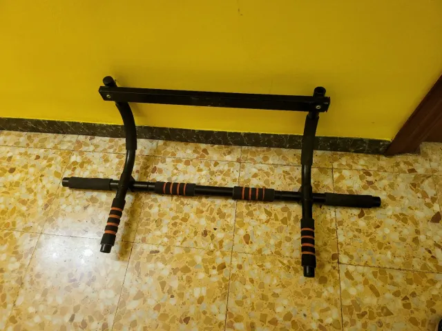 Detalles del productoBarra de dominadas para instalar en el marco de la puerta. Permite realizar ejercicios de fuerza en casa.