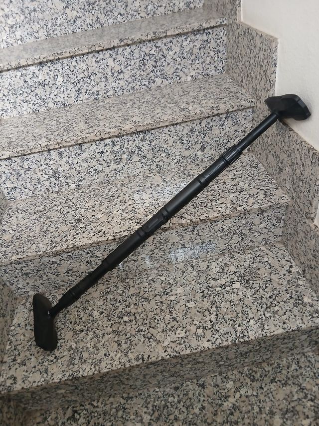 Barra de gimnasia de color negro, ideal para ejercicios en casa. - Diseño extensible. - Empuñaduras cómodas.