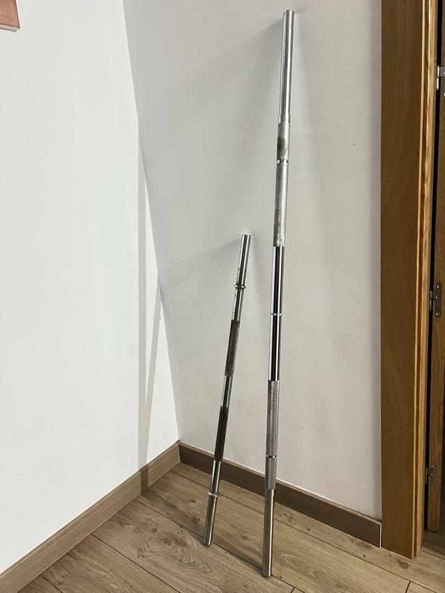 Detalles del productoSe vende pack de barras olímpicas de pesas para press peso muerto trhuster brazos espalda etc..