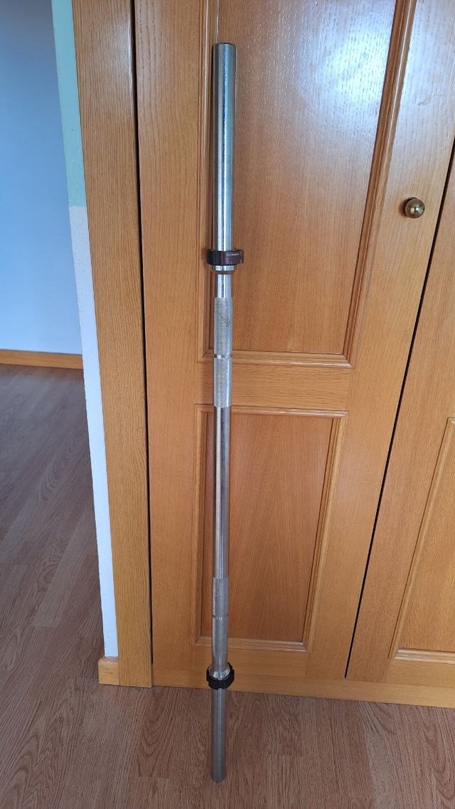 Pesa 6 kg y es fácil de guardar (1,20 m). Su moleteado asegura un excelente agarre para realizar ejercicios de musculación con total seguridad. Carga máxima: 160 kg.