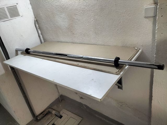 Detalles del productoBarra de pesas de metal cromado, ideal para entrenamientos.